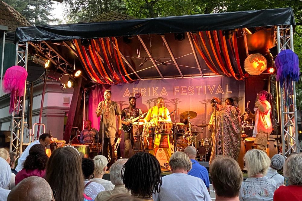 Den Anfang macht am Samstagabend auf der Bühne vor dem kleinen theater Bad Godesberg der junge Singer-Songwriter Iso Fresh, der im Senegal aufwuchs, aber seit 2019 in Bonn lebt. Seine Musik ist ein Beispiel für die Verbindung beider Welten. Aus Kamerum kommt Melchi Vepouyoum, der seine Lieder auf Bamboun und Camfranglais schreibt. In ihnen erzählt er sowohl vom dörflichen Leben, als auch von den heutigen Problemen seiner Heimat. Mit dem Zusammentreffen von Spanien und dem Senegal geht der erste Abend zu Ende, wenn Sidy Samb aufspielt. Der sengalesische Musiker lebt schon lange in Spanien und gehört dort zu den wichtigsten Mitgliedern der Flamenco-Fusion-Szene. Mit etwas traditionellerem Tanz wird auch der Sonntagabend eingeleitet: Mit „Sabaru Tàkkusaan“ ist ein traditioneller sengalesischer Tanzzirkel zu erleben, der früher Frauen vorbehalten war. Nach diesem Auftakt im Stadtpark lädt das GlobalMusicOrchestra, das bereits im vergangenen Jahr das Publikum begeisterte, zum Konzert auf der Bühne des kleinen theaters ein. Seit fast zehn Jahren existiert das Ensemble rund um Mike Herting, das in verschiedenen Besetzungen auftritt und Musiker aus Indien, Europa und Westafrika vereint. Den musikalischen Abschluss des diesjährigen Afrika Festivals in Bad Godesberg bestreitet dann Kurator Pape Samory Seck gemeinsam mit seinen jüngeren Geschwistern. Sie alle sind in einer Griotfamilie aufgewachsen, sodass ihnen das gemeinsame Musizieren und Tanzen als Ausdruck ihrer Kultur im Blut liegt.