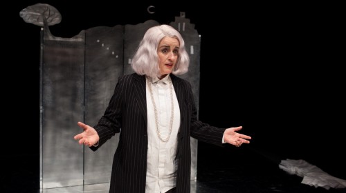 Orlando ist eine Gestalt, in der sich die Epochen spiegeln. Der englische Adlige bezaubert vor 350 Jahren Königin Elisabeth, er spaziert durch das London Shakespeares und strandet später in Konstantinopel. Aus dem hübschen jungen Mann wir eine Frau, die zu Beginn des 20. Jahrhunderts den Bloomsbury Kreis mit ihrem Charme in Bann schlägt. „Orlando“ jongliert mit den Möglichkeiten der Literatur und gilt als der zugänglichste und populärste Roman von Virginia Woolf. Die Gestalt selbst taucht nie auf, nur Zeitzeugen berichten von ihr. Die erste gute Idee des Gespanns Kratz und Anders besteht in der Konstruktion einer Erzählerin, die fast wie eine Moderatorin durch den Roman führt. Das verleiht der Inszenierung Glaubwürdigkeit und beschert ihr eine leichte Note. Einen Anflug von Genialität verrät das Bühnenbild. Es besteht aus einem metallenen Paravant, der die Giebel eines Landhauses, ein paar beleuchtete Zimmerfenster oder eine Eiche im Wind andeutet. Ein Requisit, das eine wunderbare Atmosphäre schafft und sich als praktischer Gegenstand entpuppt, hinter dessen Wänden sich Barbara Ratz geschwind umziehen kann.