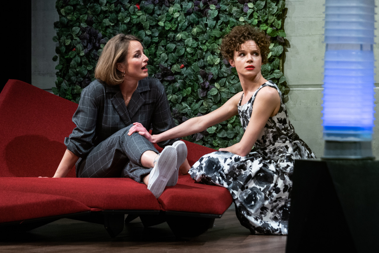 Ein klassisches doppelbödiges Boulevard-Theater gibt es im Theater zu beklatschen – wobei sich der zweite überraschende Boden erst zum Ende offenbart, aber hier keinesfalls verraten werden kann. Kathrin (Lara-Joy Körner) und ihr Mann Arnold (Karsten Speck) waren zum gründlichen Checkup beim Arzt, leider mit keinem gutem Ergebnis: Er ist kerngesund, aber Kathrin berichtet von ihrer unheilbaren Niereninsuffizienz. Es droht die zweimal wöchentliche Dialyse, oder halt ein Spenderorgan nach offizieller Wartezeit von 8 Jahren. Alternative wäre eine gespendete Niere, wenn die Blutgruppen übereinstimmen. Die stimmen bei dem Paar überein mit der zwangsläufigen Frage: „Würdest du eine Niere für mich spenden?“