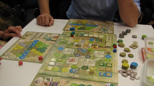 Nachdem nun schon einige Türchen des Adventskalenders geöffnet sind, wird es allerhöchste Zeit, sich über die anstehenden Weihnachtsgeschenke mal ausführlicher seine Gedanken zu machen. Wenn die eigenen Verwandten und Freunde gerne in geselliger Runde spielen, dann war die jährlich in Essen stattfindende SPIEL, die weltgrößte Messe für Gesellschaftsspiele, die richtige Adresse, um sich im Wust der mehr als 750 Neuerscheinungen von 810 Ausstellern aus mehr als 30 Nationen entsprechende Anregungen zu besorgen. 147.000 Besucher konnten die Internationalen Spieletage in diesem Jahr verzeichnen und lockten mit Turnieren besonders beliebter Spiele, persönlich anwesenden Spieleautoren, die für kurze Gespräche oder Signierstunden zur Verfügung standen, und unzähligen Spieleständen, an denen man die Jahresneuheiten direkt in munterer Runde ausprobieren konnte – wenn man früh genug vor Ort war, um sich einen der begehrten Tische hierfür zu sichern.