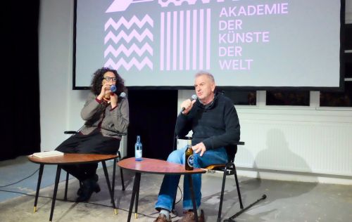 Der israelische Regisseur ist in beinahe jedem seiner Filme zu sehen, aber keiner handelt von ihm. Das muss man erst einmal schaffen. Mograbi stammt aus einem eher konservativen Umfeld, sein Vater war nicht begeistert, dass er Film und später auch noch Kunst studierte, wie er im Gespräch mit Rasha Salti verrät, die ihn liebevoll als „etwas verrückt“ vorstellt.