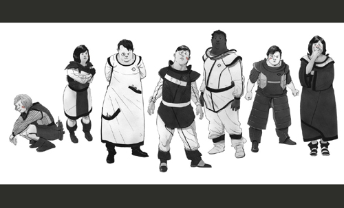 Damit dort nicht der Eindruck entsteht, man zeige eine Ausstellung über Outsider-Kunst, hat das Kuratorenteam die Arbeiten der Künstler mit einem Meer an Informationen verbunden, die den Besucher nicht nur gekonnt informieren, sondern ihn zusätzlich in einen fremden Kosmos geleiten. Und das ist dem grandiosen norddeutschen Zeichner Vincent Burmeister zu verdanken. Er erzählt durch die Ausstellung hindurch nämlich eine ganz andere Geschichte über die Menschen mit Down-Syndrom. Kapitel 1: Die Landung. Irgendwann vor 5000 Jahren landeten Außerirdische von einem fremden Planeten auf der Erde, sie haben 47 Chromosomen (Krönung der Schöpfung umschreiben?) und finden die Neandertaler (nennen wir sie lieber Jungsteinzeitmenschen). Die Aliens bleiben und damit ist die Trisomie 21 auf der Welt. Kapitel 2: Die Außerirdischen planen eine Second Mission. Sieben AstronautInnen und eine Hündin machen sich auf den Weg nach Bonn, um zu schauen, wie es den Kolonisten ergangen ist. Wie es weitergeht wird nicht verraten, nur eins: Sicherheitsfrau jUDOYOU meint: „Und schon sind wir auf dem Scheiß-Planet.“ Aber: Sie mag dennoch Rumpsteak mit Pilzsoße.