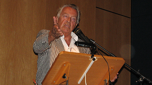 Nach witzigen Filmausschnitten und Vergleichen zwischen drögen Originalversionen und den merklich aufgepeppten deutschen Fassungen Brandts, beantwortete dieser die Fragen von Prof. Dr. Lisa Gotto. Die ifs-Dozentin ging das Gespräch von einer hohen wissenschaftlichen Warte heraus an, was von Brandt allerdings immer wieder auf eine leicht verständliche Alltagssprache heruntergebrochen wurde. Kein Wunder, schließlich sieht Brandt selbst die Ursprünge seiner „Schnodderdeutsch“-Sprachkreationen in seiner Sozialisation auf der Straße, wo man sich in Jugendcliquen mit „Asphaltformulierungen“ gegenseitig zu übertrumpfen versuchte. Die Eindeutschung der britischen Krimiserie „Die 2“ ist nach wie vor Brandts bekannteste Arbeit. Bezüglich der Frage der Synchronisation bemerkte er: „Zu sagen, wir müssen hart am Original bleiben, ist einfalls- und fantasielos.“ Und das war Rainer Brandt zu keinem Zeitpunkt seiner Dunkelgewerbe-Karriere.