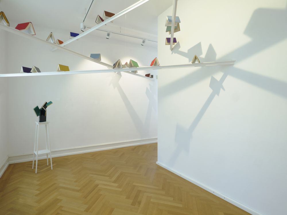 Ist es nicht erstaunlich, wie viele Künstlerinnen und Künstler aus allen Gattungen sich dem Buch zuwenden? Nicht nur seinen Inhalten und der Schrift, sondern auch – oder gerade – seiner vermeintlich stereotypen Form. Das Buch ist aufgeschlagen oder geschlossen, alleine für sich oder tritt mit weiteren auf, wird zu Skulpturen und Installationen geschichtet und umgearbeitet. Es ist als Malerei ein Farbereignis von Covern und Rücken oder widmet sich als Fotografie oder Zeichnung einzelnen Seiten, die wichtige Texte oder einfach die Konstruktion des Buches herausarbeiten.