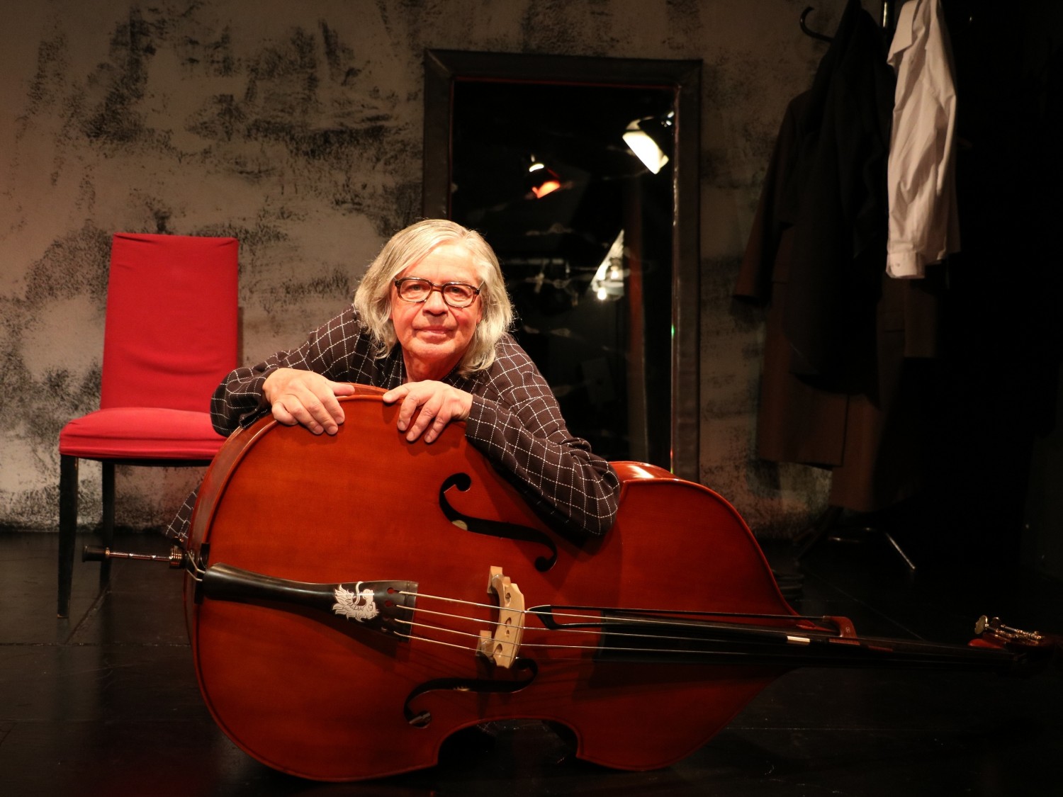 Die grauen Haare glatt an den Kopf geklatscht, eckige Beamtenbrille im Gesicht, die weiße Baumwollripp-Unterwäsche von einem abgewetzten Bademantel bedeckt, darunter die nackten Waden in braunen Socken – so gibt Theaterleiter Volker Lippmann den alternden Kontrabassisten in dem gleichnamigen Einakter von Starautor Patrick Süskind. Und er tut es mit Verve, Emotion, Ausdruck und Schmackes. „Zu dem Stück bin ich wie die Jungfrau zum Kind gekommen. Vor 25 Jahren hat Hansgünther Heyme, früherer Leiter der Städtischen Bühnen in Köln, zu mir gesagt: ‚Das musst du spielen‘. Wir haben es in Stuttgart, wo Heyme anschließend Intendant war, aufgeführt. In Köln kann ich es erst jetzt spielen, weil es zuvor zwölf Jahre lang am Theater im Bauturm lief. Das schlägt sich jetzt leider in den Besucherzahlen nieder“, erklärt uns Lippmann. „In Süskinds Buch ist der Protagonist 35 Jahre – ich bin 65. Wir haben uns dann auf 55 geeinigt. Inzwischen ist der Text zeitlos.“