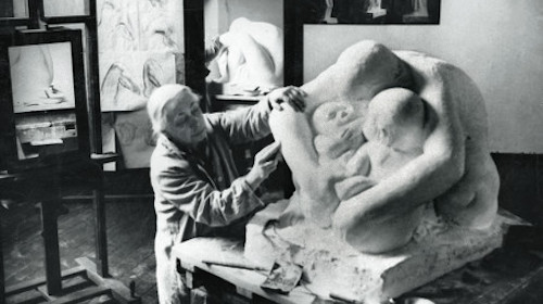Zugleich rückt die Biografie weiter in den Vordergrund. Käthe Kollwitz wurde 1867 in Königsburg geboren. Nach einem Kunststudium übersiedelt sie 1891 nach Berlin. Den Durchbruch als Künstlerin erreicht sie wenig später mit ihrem Radierzyklus zu Gerhard Hauptmanns Drama „Die Weber“. Von nun an wendet sich die Kollwitz sozialen Themen zu, sie zeichnet die Armen und die Alten, die Mütter mit ihren Kindern und sie protestiert gegen den Krieg und dann gegen die Herrschaft der Nationalsozialisten. Und so hoch sie in der Kultur geschätzt wird und als Frau in einer Männerwelt Karriere macht, so hart trifft sie der Zorn der Machthaber. Der machte auch dann nicht Halt, wenn ihre Werke allgemeine Gefühle und Situationen zum Ausdruck bringen. Dies betrifft im Besonderen die Skulpturen, mit denen sie erst spät, anlässlich eines Studienaufenthaltes 1904 in Paris beginnt. Sie sind von Intensität und vom fortwährenden Ringen geprägt, bestimmte Gesten und Konstellationen weiter zu verdichten hin zum grundsätzlichen existenziellen Ausdruck. Und doch geht es bei diesen Plastiken, deren einziges Sujet der Mensch im Kontext der Familie ist, auch um Anliegen aus der sozialen und gesellschaftlichen Wirklichkeit.