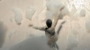 Beim Tanzgastspiel „Soapéra“ ging es fluffig-glitschig zu: Die Bühne wurde über und über mit Schaum bedeckt. Der wolkige Stoff diente als Metapher für die Inspiration und sollte einen bleibenden Eindruck machen!