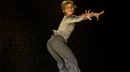 Die Bühne sieht aus wie eine Turnhalle beim Abschlussball. Zwei Seiten sind mit silbernen Vorhängen geschmückt, links stehen ein Flügel und ein langer Tisch mit Instrumenten und Notebooks, hinten rechts eine lange Bank. Auch die elegante Kleidung der eintretenden Schauspieler, Musiker und Sänger könnte auf ein Fest hinweisen.