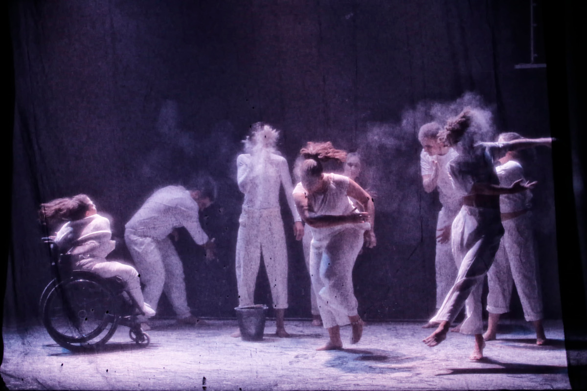 In den ersten Minuten des Stücks wird klar: Dekolonisieren ist auch etwas Körperliches. Um das Eigene, das „Ich“ überhaupt erst zu erfahren, schütteln die Performer die aufgestülpte Kultur förmlich ab. Das Publikum beobachtet sie dabei durch einen Vorhang, auf den Videos projiziert werden, und schaut auf sie wie auf Gefangene. Doch sie schauen zurück. Selbstbewusst und menschlich treten sie einander und dem Publikum gegenüber. Der Vorhang wird zum Spiegel. Sie haben der Hochkultur etwas entgegenzusetzen: sich selbst.