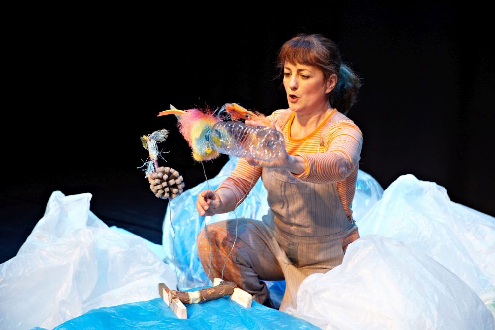 Das schauspielerische Solo mit unzähligen Plastikobjekten vermittelt Kindern ab drei Jahren einfühlsam das Drama unserer Tage, mit deren Erbe sich die Kids von heute schon bald konfrontiert sehen werden. Aktrice Julia von Tettenborn gelingt in der rund 50-minütigen Darstellung ein sensibler wie furioser Tanz durch die verabfallten, stinkenden Gärten der Konsum- und Weg damit-Generation. Trotz des ernsten Hintergrundes füllt sie die Spielstätte in multiplen Rollen als Schnatter-Enten-Duo, verpeilte Putzfischkolonne, kecker Rochen-Checker, Chef-Krabbe, betörende Quallen-Schönheit oder Angeber-Krake mit Lachen und entfacht bei den kleinen Zuschauer:innen Unterwasser-Freudentänze auf den Rängen. Doch wenn die Darstellerin im weiß-blauschillernden Ganzkörperdress zum majestätischen Wal wird, verstummt der Saal. Verfängt jener sich doch in den menschlichen Hinterlassenschaften, die tonnenweise in den Ozeanen treiben, und droht zu ersticken. Der einst anmutige Gesang des Riesen kippt in einen markerschütternden Hilferuf, der nicht nur die Meeresgeschöpfe, sondern auch die Zuschauer:innen berührt.