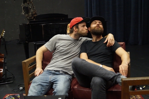 Ein Bühnenbild, das ganz ohne Glanz und Glitzer auskommt, keine extravaganten Effekte, keine ausartende Landschaft von irgendwelchen Aufstellern oder Bühnenelementen, keine kuriosen Kostüme, keine maßlosen Masken, kein Feenstaub und keine Seifenblasen oder was einem sonst noch so einfallen könnte. Alles wirkt eher wie zufällig ausgesucht und hingestellt, als hätte man einfach das genommen, was gerade hinter den Kulissen zu finden war, irgendwo ein Flügel, hier ein paar Gitarren und da die Mikros mit Kabelsalat, die Künstler in authentischer Alltagskleidung: Patrick Salmen und Quichotte laden ein mal im Monat mit ihrer „Delayed Night Show“ in ein gemütliches Wohnzimmer – im Comedia Theater – ein, wo nicht nur gelesen und geplaudert wird.