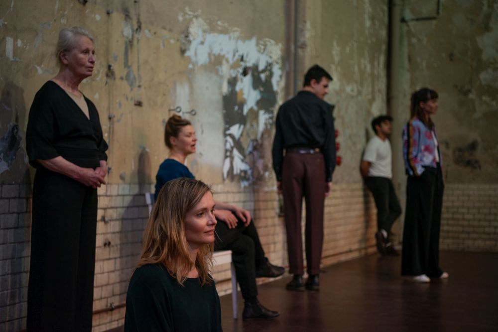 Die Performer situieren sich im Raum mit Bezug, Kollektivität aber bleibt eher eine Behauptung – auch, weil das Sprechen bis auf wenige Ausnahmen solistisch ist. Kurioserweise wirkt die an den Schluss angehängte Annäherung an Becketts kurzen Prosatext „Lessness“ (Losigkeit) am triftigsten. Eine alte Frau schleift einen Stuhl in die Mitte, setzt sich und wiegt den Körper vor und zurück. Den wechselnd eintreffenden Performern gibt sie „Lessness“-Losungen mit auf den Weg, was zu einem endlosen Trudeln im Raum führt. Plötzlich stehen Fragen nach Kollektivität und Vereinzelung, nach der Rolle des Willens und der Attribute im Raum. Insgesamt ist das aber doch zu wenig für einen Abend, der sich einem derart drängenden Problem wie dem der Kollektivität verschreibt.