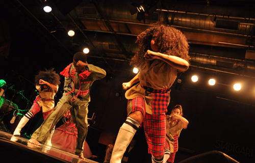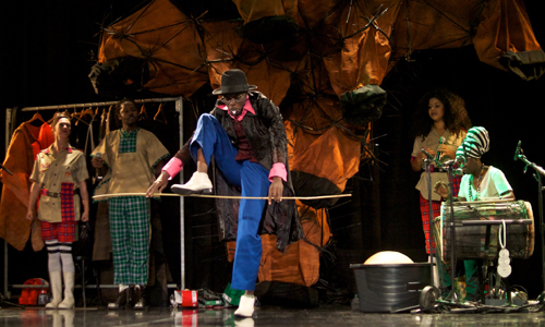 Wenn es um die Rezeption von Kunst geht, macht der westliche Betrachter nichts lieber, als abzumessen, zu kategorisieren und das Angebot des Künstlers schließlich in einer Schublade zu verstauen, wo es nicht mehr stört. Als gelte es, sich diesem Prozess von Anfang an mit geballter Faust und stampfendem Fuß zu erwehren, entzieht sich das deutsch-afrikanische Jitta Collective um die Kölnerin Stephanie Thiersch und Kenianer Kefa Oiro mit ihrer Tanz-, Mode- und Musikperformance „Chombotrope“ hier von Anfang jeder Einordnung. Was als Parodie einer Modenschau beginnt, bei der die Upcycling-Couture des ugandischen Modedesigners Xenson (alias Samson Ssenkaaba) präsentiert wird, mutiert wenig später zu einer atemlosen, von Drummer Dodo NKishi aufgepeitschten Tanzperformance, zum Flirt mit Spoken-Word-Passagen, zum Rap- und Soulkonzert und schließlich zum fanalhaften Appell an die afrikanische Gegenwartskunst, den Raubbau an der eigenen Kultur anzuprangern.