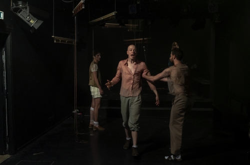 Allerdings unterbricht die Regie die Handlung immer wieder mit ekstatischen Tänzen mal von Helge, mal von Christian, die zwischen Flucht, Remedium, Kritik oder Archaik changieren – der Ibsensche Aufklärungsfuror im „Fest“ wird mit Assoziationen an Euripides‘ „Bakchen“ ausbalanciert. Die Erinnyen werden zu Mänaden. Wenn schließlich das ganze Ensemble im Nebel mit nackten Oberkörpern tanzt und schließlich eine tröstende Umarmungsorgie auch das Publikum miteinschließt, aktiviert die Inszenierung kollektivistische Phantasmen, die an das Living Theatre denken lassen. Die Atmosphäre kollektiver Nähe und Vertrautheit innerhalb des Ensembles reibt sich aber immer wieder an der Rollenindividualisierung, die mitunter als Zwang erscheint und so auch gesellschaftlich deutbar wird. Nicht gelungen dann die in unterschiedlichen Interpretationen durchgespielte Szene, in der der wiedergefundene Abschiedsbrief von Schwester Linda die Missbrauchs-Anschuldigungen Christians bestätigt. Am Ende allerdings betritt der 1942 geborene Ralf Harster die Bühne und hält lachend Helges Abschiedsrede. Aber da sind die jungen Schauspieler längst abgegangen, weitergezogen, während der alte Mann, der die 1960er noch erlebt hat, zugleich das Theater der Keller mitverabschiedet, das nach 45 Jahren seine Spielstätte in der Kleingedankstraße verlässt.