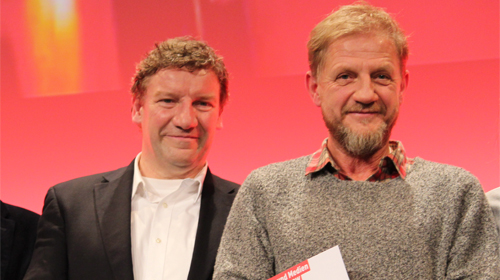 Traditionell ist die Kinoprogrammpreisverleihung aber keine dröge Urkundenvergabezeremonie, sondern auch eine Vorschau auf kommende Kinoattraktionen, bei denen Regisseure und Schauspieler ihre neuen Werke vorstellen und gleichzeitig für die Kinobetreiber als Paten fungieren. In diesem Jahr war dafür beispielsweise das Team von „Radio Heimat“ zu Gast. Regisseur Matthias Kutschmann erläuterte im Gespräch mit dem vom WDR bekannten Moderator Ingo Schmoll, dass es durchaus schwierig war, für seinen Film die Ruhrgebietszeit der 60er und 80er Jahre zu rekonstruieren: „Viele der Originallocations sind schon größtenteils abgebaut, da musste viel gestrichen und nachgebaut werden.“ Gleichwohl fiel es den Darstellern leicht, in diese längst vergangenen Tage wieder einzutauchen. Stephan Kampwirth erzählte: „Das, was da im Film passiert, habe ich damals selbst erlebt! Das alles war erschreckend nah dran an meiner eigenen Jugend.“ Auch für seine Filmpartnerin Sandra Borgmann war der Dreh von „Radio Heimat“ etwas ganz Besonderes: „Das war für mich in der Tat ein sehr heimatlicher Film, weil er mich an Orte zurückführte, die ich mit meiner eigenen Kindheit verbinde.“ Ähnliche Erfahrungen machte auch Kultregisseur Sönke Wortmann, der Mitte nächsten Jahres eine weitere Frank-Goosen-Verfilmung in die Kinos bringen wird. Am Abend zeigte er erste Ausschnitte aus „Sommerfest“, der sich derzeit im Rohschnitt befindet. „Das wird vielleicht mein persönlichster Film seit „Kleine Haie“, denn es ist ein richtiger Heimatfilm geworden, und ich bin ja auch ein Kind des Ruhrgebiets“, kommentierte der Regisseur.
