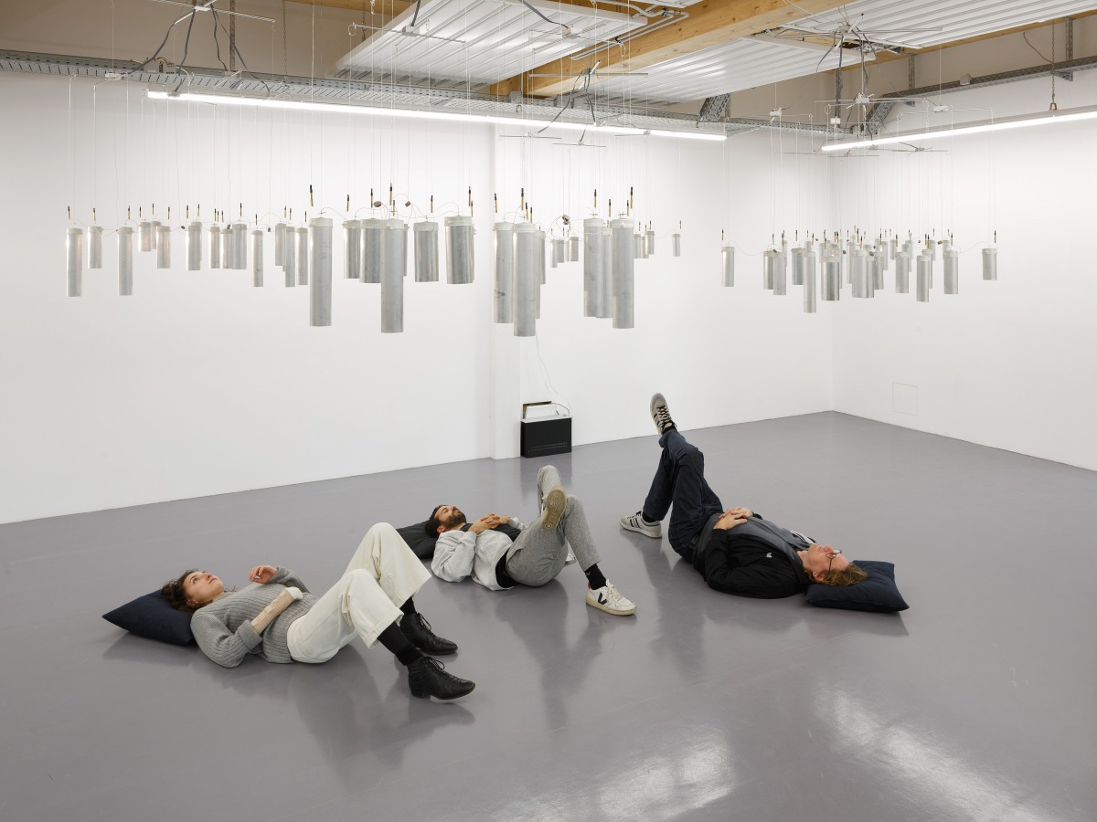 Céline Berger zeigt in der Videoarbeit „Rare Birds In These Lands“ die Schnittstelle zwischen Kunst und Unternehmen und fragt welche Auswirkungen es hat, wenn Künstler mit Unternehmen zusammenarbeiten. András Blaszek installiert im Tunnel unter der Düsseldorfer Rheinuferpromenade eine „akustische Wand“ und experimentiert mit den Möglichkeiten, wie Klang im Raum selbst zur Architektur werden kann. Seine Installation ruft den auditiven Eindruck von Sound hervor, ohne dass tatsächlich Sound erklingt. Kerstin Ergenzingers 80-kanalige Rauminstrument „Pluvial“ erzeugt beweglich akustisch regnerische Bedingungen im Raum. Mal ist es einzelner Niederschlag oder anhaltende Regenfälle. „Die Architektur des Unbewussten“ von Søren Siebel ist eher eine Interaktion zwischen Körpern, Sound und Umgebung. Durch halbtransparente Wände entstehen neue frei begehbare Räume mit Tänzern und der Musik von Bad Grossfeld.