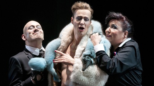 Nicht nur die Inszenierung, die durch Witz, Originalität und eine solide Personenführung überzeugt, holt den barocken Dreiakter aus der Spezialistenecke, sondern auch die Tatsache, dass die Produktion ohne viele Gäste auskommt. Solche Experten für Alte Musik sind Fausto Nardi am Dirigentenpult, der Cembalist Andreas Küppers und Johannes Vogt, der in der kleinen Orchesterbesetzung die Theorbe, eine barocke Laute, spielt. Auf der Bühne beweist unterdessen das neue Solistenensemble (nebst dem altbewährten Allround-Tenor Hannes Koch), wie gut es ohne Extra-Verstärkung mit dem Barock-Genre zurechtkommt. Zentraler Auslöser der mehr amourösen als politischen Verwicklungen ist Christoph Strehl als Eliogabalo, ein notorischer Schürzenjäger, der sich zur Abwechslung – wie das historische Vorbild – auch gern mit knackigen Jünglingen umgibt.