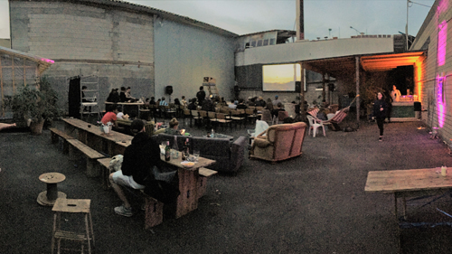Mit ihrem neuen Standort ganz am Ende der Vogelsanger Straße, eingebettet zwischen Schrottplätzen und An- und Verkäufen für Autos, ist die Niehler Freiheit aber auch nicht unglücklich. Der Ort, den sie liebevoll als „Schrauber-Ghetto“ bezeichnen, besteht aus einer kleinen Werkstatthalle und einem Hinterhof, auf dem Filme gezeigt, Flohmärkte veranstaltet und andere kulturelle Events zelebriert werden. Der Hof wird komplettiert durch einen Dj-Pult und einer Bar, an der frisches Essen und Getränke angeboten werden. Aus den Boxen wabert ruhige House-Musik. Das Publikum verteilt sich in Grüppchen über den Hinterhof und der Werkstatthalle, in der an diesem Tag die Ausstellung „Kunst aus dem Nichts“ gezeigt wird.
