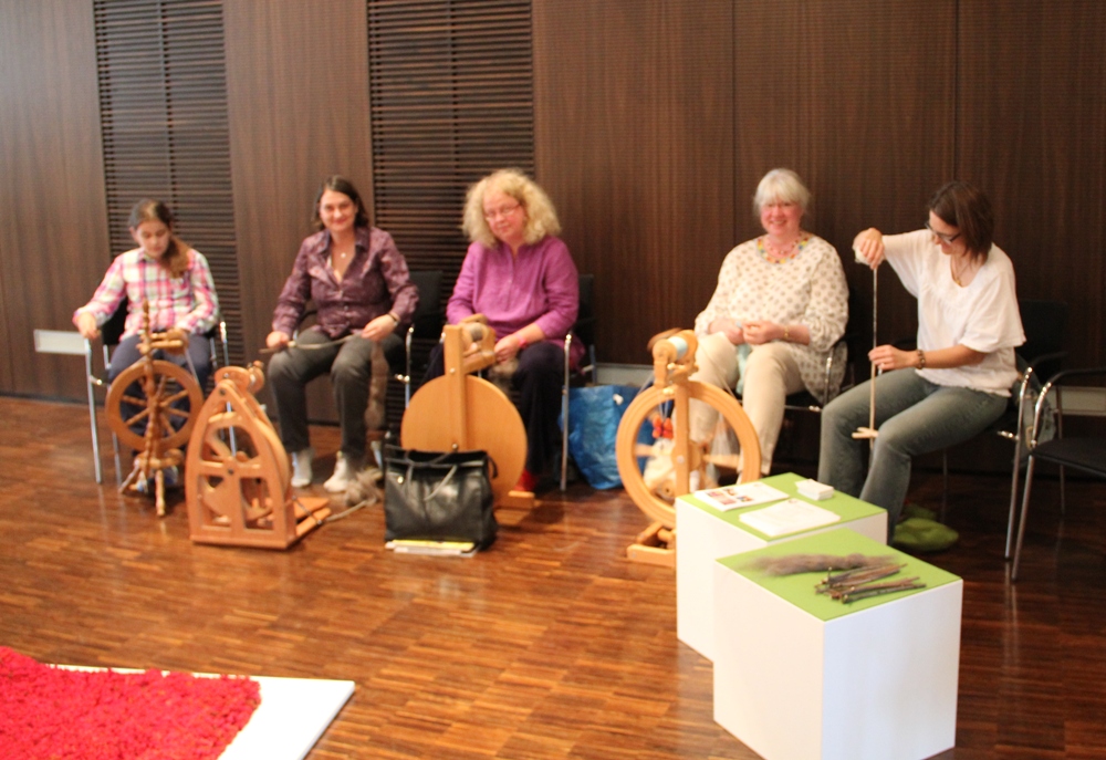 Bei der Veranstaltung „Verstrickte Modemaschen – Faire Plastiktaschen“ drehte sich einen Tag lang alles um faire Textilproduktion. Bei diesem Aktionstag im Rautenstrauch-Joest-Museum gab es Mitmach-Aktionen, Informationsstände, eine Ausstellung mit Exponaten, Vorträgen und einer Podiumsdiskussion rund um das Thema „grüne“ Textilwirtschaft. Unsere Bildergalerie zeigt das vielfältige Angebot, das die Besucher nicht nur informierte, sondern auch zum Nachdenken über Nachhaltigkeit und weltpolitisches Engagement anregte. Bei einer Materialstation konnten an Fühl-Boxen gängige aber auch sehr besondere Materialien wie Milchfaser oder Brennnessel auch haptisch bestaunt werden. In netter Runde konnte man das alte, früher jedoch alltägliche Handwerk des Handspinnens mit dem Spinnrad ausprobieren und mit etwas Geschick und Hilfe der Inhaberin des offenen Ateliers Heimatwolle in Köln, sogar einen ersten eigenen Faden produzieren. Bei der Materialtausch-Station gab es die Möglichkeit, man von zuhause mitgebrachte Materialien zu tauschen und anschließend auch gleich im Workshop zu verwerten.