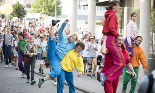 Dass Kölner nicht nur zur Karnevalszeit gerne unter blauem Himmel feiern, ist ein Klischee mit Realitätsgehalt. Stefanie Thiersch bewies im letzten Jahr mit dem „City Dance“, dass man neue Volksfeste mit Sinn und Verstand in der Stadt verankern kann. 5000 Menschen tanzten im September auf jenem Bahnhofsvorplatz, der acht Monate zuvor so sehr in Verruf geraten war. Zu tanz nrw 17 wird sie ausgehend vom Oberlandesgericht noch einmal einige Aktionen des damaligen Riesenprojekts wiederbeleben (7.5., 15 Uhr).
