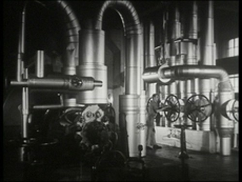 20 Jahre später ging es dem Ruhrbergbau scheinbar noch gut. Da wollte sich auch die Gelsenkirchener Bergwerks-AG als eine der größten Zechengesellschaften an der Ruhr in einem aufwändigen Repräsentationsfilm in Szene setzen und gab einen Film in Auftrag, der den gesamten Produktionsprozess dokumentieren sollte. „Kohle“ (1958, 35 Min, 16 mm) zeigt also den Weg der Bergleute von zu Hause in die Stollen und den des schwarzen Goldes bis zur Weiterverarbeitung in Brikettfabrik und Kokerei. Schon ein Jahr vorher wurde „Strom – Lebensnerv unserer Zeit“ (1957, 14 Min, 16 mm) gedreht. Die Rheinisch-Westfälische Elektrizitätswerk AG aus Essen wirbt ziemlich clever für ihre Elektrizitätsversorgung der boomenden Bundesrepublik und das ohne einmal genannt zu werden. Interessant ist ganz aktuell auch der Ausblick auf die sich damals abzeichnende Nutzung der Kernenergie und die gleichzeitig seltenen Aufnahmen vom Wasserkraftwerk Baldeney.