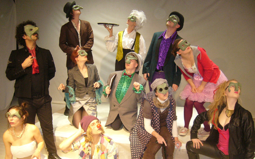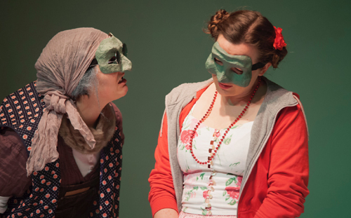 Alle Akteure tragen grüne Gesichtsmasken, jede ist anders, von den Schauspielern selbst hergestellt, angelehnt an die klassischen Figuren der Commedia dell’arte (als „physical theatre“ ein Teil der Ausbildung für das dritte Semester), wie dem Dottore, dem Capitano, der Pulcinella, dem Pantalone, dem Arlecchino oder der Amorosa. Sie werden abgelegt, wenn die Figuren ihre tatsächliche Eigenart zeigen. Köstlich auch mehrere Kung-Fu-Kampfszenen und Ohrfeigen-Kaskaden, die hervorragend choreografiert sind. Der Besuch ist wärmstens empfohlen.