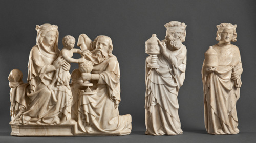 Hauptort ist – neben dem Dom selbst – das Schnütgen Museum an der Cäcilienstraße. Was dort an Werken aus siebzig Sammlungen und Museen entliehen werden konnte, ist sensationell. Ausgestellt sind Gemälde, Skulpturen, liturgische Handschriften, Altarbilder und liturgische Gegenstände, die über das rein ästhetische Erlebnis hinaus zu den Mythen zur Geburt Christi und den Drei Königen, zur Gesellschaft und zur Kunstgeschichte im Wandel der Epochen Auskunft geben. Zu bewundern sind Meisterwerke der Bildenden Kunst der Gotik und Renaissance. Wann sonst sieht man den „Reisealtar des Robert von Anjou“ aus dem frühen 14. Jahrhundert: das Baldachinretabel der Schwarzen Madonna des Tino di Camaino, das sich in der Sammlung des Museums in Brünn befindet? Herausragend ist auch das sogenannte Carrand-Diptychon, das ohnehin eines der wenigen fantastischen Beispiele früher nordischer Malerei ist, welche die Heiligen drei Könige zeigen. Entstanden um 1360 in Brabant oder Luxemburg, ereignen sich die bildnerischen Geschehen der beiden Tafeln auf gedrängtem Raum. Mit fließenden Formen sind vor dem Goldgrund einzelne dramatische Szenen komprimiert; Anmut ist mit Pathos verknüpft. Dazu sind im linken Flügel die Mutter Gottes und im rechten Christus am Kreuz durch die kompositorische Staffelung der Figuren und den Lichteinfall hervorgehoben.