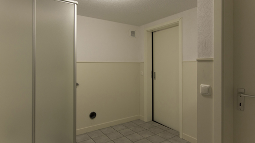 Weiter, weiter, die Bäder werden immer mehr. Inzwischen bin ich ein Kenner. Visualisiere alles. Da! Bad 16. Die Fuge zwischen den Bodenfliesen unter dem Lichtschalter ist zu breit. Pfusch in meiner klinischen kleinen Welt! Theaterressourcen werden in einem Maße genutzt, wie es in einem Museumsraum nur schwer möglich gewesen wäre, sagt das Schauspiel Köln. Das ist mir längst egal. Wo bleibt das dramatische Ende? Es ist unspektakulär. Es werde Licht. Es lebe das Chaos. Der Irrweg durch Werkstätten und Umkleidekabinen ist offensichtlich falsch, obwohl Pfeile den Pfad bezeichnen. Letzter Ausgang: Fluchtweg.