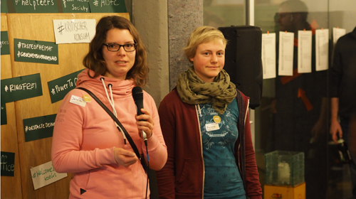 Anja hatte zur Veranschaulichung ihres laufenden Projekts Wilma in der Wurmkiste eine ebensolche Kiste dabei. Die Gruppe führe eine Webseite und veranstalte Workshops. Für sie sei Wilma, der Wurm, ein „ziemliches Vorbild“ geworden, denn sie sei „ziemlich öko, sie produziert keinen Müll, verwertet den sogar noch in etwas Sinnvolles. Die Wilma ist Minimalist, lebt in einer Kiste, auf wenig Raum. Wenn’s zu eng ist, passt sie sich auch an. Sie ist tolerant und sozial: Da leben ganz viele verschiedene Arten in der Kiste und kommen gut miteinander aus. Außerdem ist Wilma Veganer.“ Das sei unter anderem gut fürs Klima.