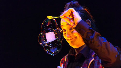 „Wer glaubt, dass es viereckige Seifenblasen gibt?“, fragt Stephan Masur, Seifenblasen-Künstler und Leiter von „Cirque de Tuque“. Die Reaktion im Publikum ist verhalten, bis auf zwei einsame Hände keine Reaktion. „Dann werden wir doch mal sehen, was sich da machen lässt“ erwidert Masur verschmitzt und präsentiert dem verdutzten Publikum eine viereckige Seifenblase. Daran glauben, das ist Masur besonders wichtig an diesem Abend im Senftöpfchen-Theater in der Kölner Innenstadt. Und hier sind tatsächlich viele Dinge möglich, die eigentlich unmöglich erscheinen.