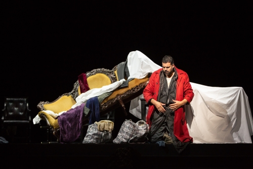 „Dies ist die Oper, mit der in Wahrheit meine künstlerische Laufbahn beginnt“, hat Giuseppe Verdi über seinen Nabucco gesagt. Und an Bekanntheit mangelt es dem biblischen Vierakter wahrlich nicht. Wer jemals eine Operngala gesehen hat, dem ist mit einiger Sicherheit auch der Gefangenenchor „Va, pensiero“ zu Ohren gekommen: „Flieg, Gedanke, auf goldenen Schwingen“. Bei den Stadttheatern gehört „Nabucco“ nicht gerade zu den Dauerbrennern. Das Libretto von Temistocle Solera ist bei weitem nicht so gelungen wie die Partitur und gilt heute in seiner ursprünglichen Form als kaum noch zumutbar. Doch Regietheater macht erfinderisch. Und so wird in jüngster Zeit gerne Shakespeares King Lear bemüht, um dem Drama um den antiken Babylonier-König Nebukadnezar II. („Nabucco“ ist die italienische Kurzform) mehr Stringenz und eine stärker zugespitzte Tragik zu verleihen. Regisseurin Sonja Trebes wählt bei ihrer Inszenierung für das Gelsenkirchener Musiktheater auch diesen Ansatz – gelegentlich gewürzt mit einer kräftigen Prise schwarzen Humors. Wenn der irre König nach seinem Schwert verlangt und stattdessen einen Besen in die Hand gedrückt bekommt, wird das besonders deutlich. Nabucco wird nicht wieder zu Sinnen kommen. Und auch kein Blitz zuckt auf ihn herab, sondern ein Pistolenschuss, den seine einstige Lieblingstochter Fenena auf ihn abfeuert – ohne ihn zu töten.
