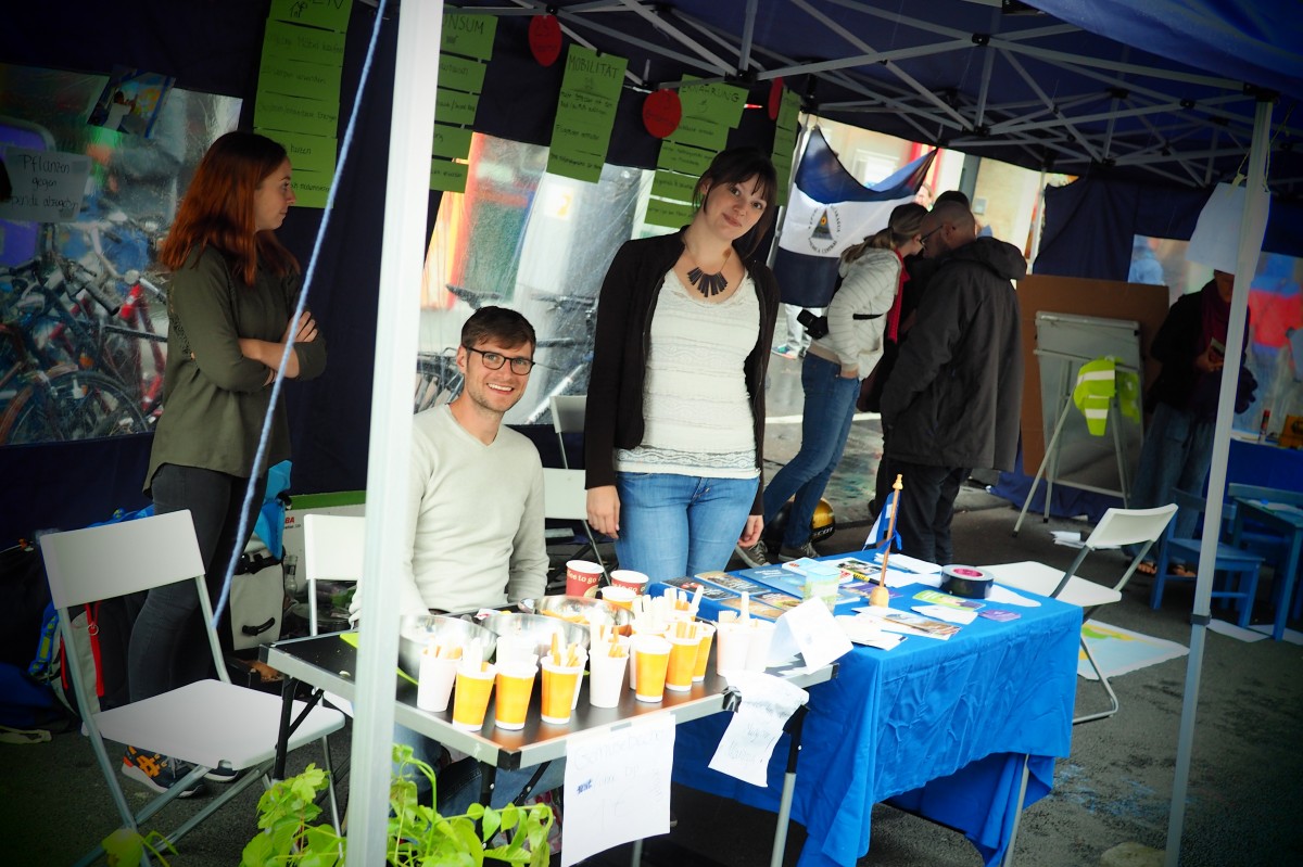 Neben kulturellen Gruppen und Initiativen aus Sülz waren vielerlei Umwelt- und Menschenrechtsorganisationen vertreten. Zwei Kölner Greenpeace Arbeitsgruppen etwa informierten zum Thema Energiewende und Kohle sowie zum Problem von Plastikteilen in der Umwelt. Beim Thema Mobilität wurde von vielen Gruppen der Fokus aufs Fahrrad gelenkt. Die Fahrradbeauftragten der Stadt konnten an ihrem Stand diesmal unter anderem berichten, dass an den Zählstellen der Radverkehr jedes Jahr um fünf Prozent zulege. Zugleich habe man 2014 über 2000 neue Abstellplätze geschaffen und an einem touristischen Radwandernetz gearbeitet (RadRegioRheinland). Man erweitere das Bike&Ride-Angebot und diskutiere etwa in Sülz mit den Bürgern über eine fahrrad- und fußgängerfreundliche Umgestaltung der Berrenrather Straße als Parallelroute zur Luxemburger Straße.