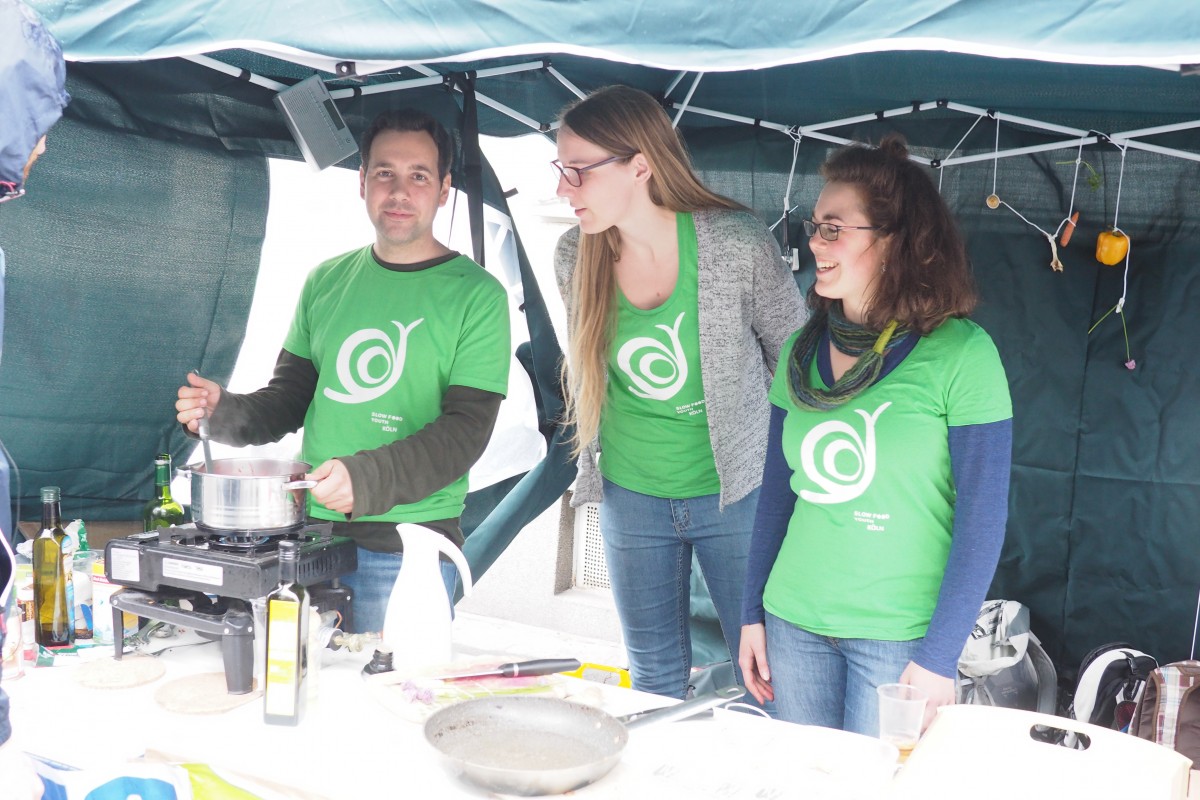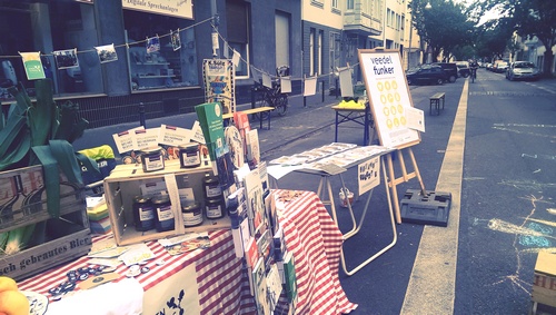 Aus Ehrenfeld waren unter anderem Colabor und das Stadtteilmagazin Veedelfunker dabei, die sich und das gemeinsame nachhaltige Food-Projekt „Ehrenschmaus“ vertraten, das allerdings mit dem Tag des Guten Lebens, an dem noch einmal „regionales“ Essen zubereitet wurde, ausgelaufen sei. Man will, dass Ideen wie der Veedelfunker in anderen Vierteln und Städten Schule machen und sucht auch Unterstützer. (Für den neuen Veedelfunker hat man ein Thema, aber noch nicht das nötige Geld.) Das Ehrenschmaus-Team unterstützt die Food Assembly, die jeden Mittwoch (17.30-19.30 Uhr) im Colabor stattfindet und mittels einer Online-Plattform regionale Erzeuger und Kunden, die wissen wollen, wo ihre Lebensmittel herkommen, zusammenbringt. Eine weitere Food Assembly gibt es seit diesem Wochenende in der Wildkräuterei Junkersdorf.