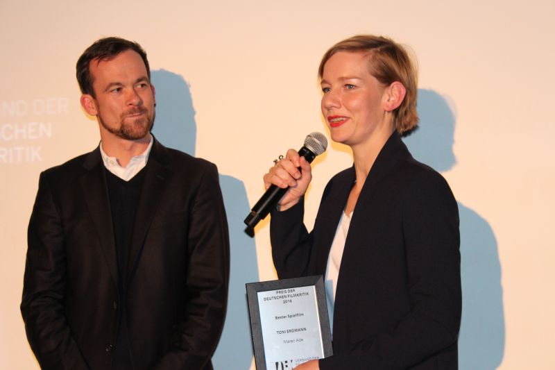 Auch bei Sandra Hüller blieb es für ihre Darstellung in „Toni Erdmann“ bei einer Nominierung für den „Preis der Deutschen Filmkritik“, die Auszeichnung selbst erhielt Lilith Stangenberg für „Wild“. Auf der Bühne dankte sie nicht nur ihrer Regisseurin Nicolette Krebitz, sondern auch ihrem Spielpartner im Film, dem Wolf. „Er hat mich dazu getrieben, ohne Hintergedanken und mit einer großen Wahrhaftigkeit zu spielen, weil er mir nicht vertraut hat, wenn ich zu nervös war oder neben mir stand, und die Szene dann nicht funktionierte“, so Stangenberg. Der Hauptpreis des Abends für den besten Spielfilm des Jahres 2016 ging dann aber doch wieder an „Toni Erdmann“, der laut Jurybegründung zwar „eigenständig ist, aber dennoch an die Komödientradition von Billy Wilder und Ernst Lubitsch anknüpft.“ Sandra Hüller, die in diesem Fall den Preis stellvertretend für Maren Ade entgegennahm, betonte, „dass der Film international nicht so gut funktionieren würde, wenn die deutsche Filmkritik nicht so gut über ihn geschrieben hätte.“
