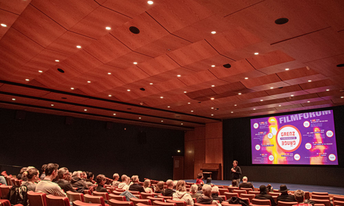Wilders Film stecke voller Anspielungen, beispielsweise seien die drei Kommunisten eine Hommage an die drei Genossen aus Ernst Lubitschs Komödienklassiker „Ninotschka“, führte Daniel Kothenschulte aus. Auch der Name des von James Cagney gespielten Protagonisten MacNamara sei ein direkter Verweis auf den damaligen US-Verteidigungsminister Robert McNamara, dessen auffälligen Mittelscheitel man im Film sogar kopierte. Hinzu kämen „etliche andere Anspielungen, die man heute gar nicht mehr alle versteht“, so Kothenschulte. Offensichtlich und ungewohnt für einen Film aus dieser Epoche sind neben dem komödiantischen Umgang mit der NS-Vergangenheit auch das schamlose Product-Placement für das Erfrischungsgetränk Coca-Cola. Das sei bereits während der Produktion auch Joan Crawford („Solange ein Herz schlägt“) sauer aufgestoßen, weswegen die zu dieser Zeit im Aufsichtsrat von Pepsi-Cola tätige Schauspielerin ihren Unmut Billy Wilder gegenüber deutlich machte. Daraufhin baute der Regisseur in „Eins, zwei, drei“ noch kurzfristig den legendären Pepsi-Gag ein. Kothenschulte erläuterte, dass noch eine andere Last-Minute-Änderung bei den Dreharbeiten unumgänglich wurde, denn mit dem Bau der Berliner Mauer im August 1961 konnten einige der Grenzübergangsszenen im Film nicht mehr wie geplant on Location gedreht werden. Das Team zog daraufhin in die Bavaria-Studios in München-Geiselgasteig um, wo Teile des Brandenburger Tores für die noch fehlenden Szenen nachgebaut werden mussten. Die Reihe „Grenzgänge“ läuft noch bis Dezember 2023 im Filmforum und präsentiert monatlich einen weiteren Film zu diesem spannenden Themenkomplex.