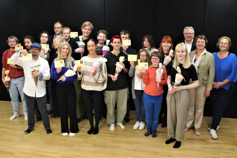 Die Zeit sei reif für eine Abbildung aller Menschen in den Künsten – dazu gehörten selbstverständlich auch Personen mit Behinderungen, unterstrich Schulleiter Michael Meichßner in seiner Eröffnungsrede die bisherige Unterrepräsentanz körperlich und geistig beeinträchtigter Personen. Fachbereichsleiterin Sabine Hahn erinnerte im Rahmen der Veranstaltung an die heilende Kraft des spielerischen Ausdrucks: „Nur eines kann den Menschen erlösen: das Spiel. Der spielende Mensch allein erlöst, erlöst sich selbst, weil das Spiel das Gesetz der Gravität, nicht nur im physikalischen, sondern auch im moralischen Sinne aufhebt. Weil das Spiel als die einzige lebendige Handlung geradewegs einmündet in die Heiterkeit des Lebens“, so die Ausbildungsleiterin und Dozentin. Die 1954 gegründete Ausbildungsstätte gehört zu den ältesten privaten Theaterschulen der Republik. Zu ihren Absolvent:innen gehören unter anderem Heiner Lauterbach, Gudrun Landgrebe und Annette Frier.