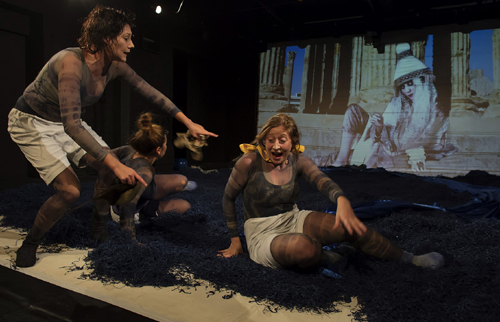 Auch der Frauenchor nämlich hat mit seinem antiken Vorbild wenig gemein. Die drei Frauen, eine Deutsche, eine Griechin und eine Serbin, beklagen lauthals die Probleme in Europa. Wirtschaftliche Stagnation, Arbeitslosigkeit, Demokratiedefizite und Flüchtlingskrise. Auf der Suche nach einer Lösung steuern sie auf die Wiege Europas zu: Athen. Während ihrer Reise sprechen sich die drei andauernd Mut zu. Sehr wechselhaft gestaltet sich dieser Weg zur Besserung: Erst berauschen sie sich an ihrem eigenen Engagement, um wenig später wieder ratlos zu sein, wie die Wende herbeizuführen sei. Permanent bricht Streit aus zwischen den drei Chorfrauen.