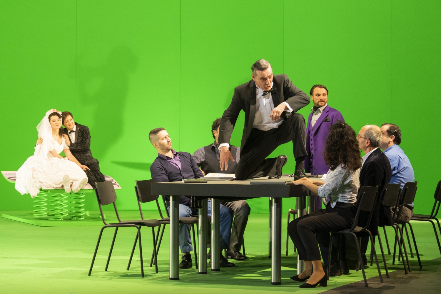 Mit der Inszenierung von Beethovens Befreiungsoper direkt zu Beginn des Jubiläumsjahres wurde in Bonn Volker Lösch betraut, der bekannt dafür ist, Opernstoffe politisch aktuell auf die Bühne zu bringen. Dieser Aktualitäts-Bezug wird in Bonn nicht nur angedeutet, sondern hier kommt das Publikum um den Bezug zur politischen Willkür in der Türkei nicht herum: Das musikalische Werk wird immer wieder unterbrochen durch eine Art Round Table, um den sich die Zeitzeugen Akay, Doğan Akhanli, Süleyman Demirtaş, Agît Keser und Dîlan Yazicioğlu versammeln, die alle ihre ganz persönlichen Erfahrungen mit der türkischen Willkür gemacht haben und eindringlich von diesen berichten. Für das Publikum ist damit jede Form der Distanzierung hinfällig, denn den drastischen Schilderungen kann man sich nicht entziehen und längst sitzt man nicht mehr „nur“ in einer Oper.