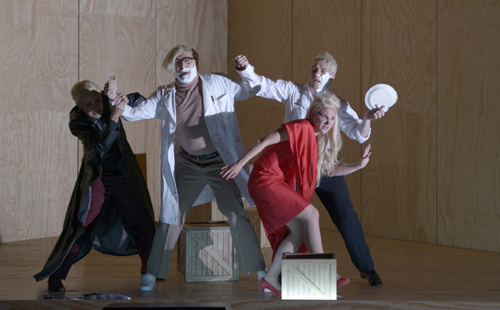 Kein Zweifel, Gloger mag das Stück wirklich gern. Er kostet die überdrehte Komik mit unverkennbarem Genuss aus – und verlangt seinen Darstellern dabei einiges ab. Geradezu durchchoreografiert wirken die Arien, Duette und sogar die Rezitative. Jede musikalische Phrase bekommt ihre Geste, wenn sie Sänger nicht gar im Laufschritt über die Bühne wirbeln. Steife Rampengesänge kann sich die Regie schon deshalb nicht leisten, weil außer den vielen hölzernen Frachtkisten die Bühne kaum Ankerpunkte zu bieten hat. So schön die Kisten-Idee auch ist, letztlich macht der beinahe vollständige Verzicht auf Requisiten der Regie doch auf Dauer das Leben schwer und die lange Exposition im ersten Akt gerät langatmiger, als sie sein müsste.