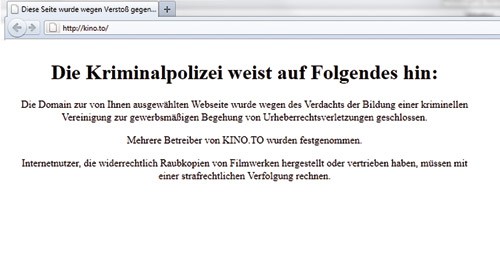 Nach mehreren Jahren Vorarbeit wurde Anfang Juni das illegale Filmportal kino.to vom Netz genommen. Auf dieser Webseite wurden vor allem aktuelle Kinofilme millionenfach runtergeladen. Während der Server in Russland stand, weil die dortigen Behörden in dieser Hinsicht wenig Kooperationsbereitschaft gezeigt haben, waren die Hintermänner sowie der überwiegende Teil der Nutzer in Deutschland zu finden.