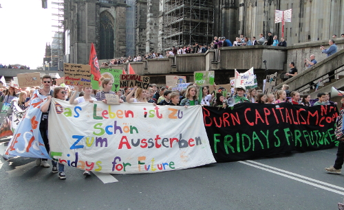 Drei Monate sind seit dem ersten globalen Klimastreik von „Fridays for Future“ (FFF) vergangen, bei dem rund um den Erdball in 90 Ländern insgesamt etwa 1,5 Millionen Schüler ihren Klassenräumen fernblieben, um für eine Kehrtwende in der Klimapolitik zu  demonstrieren. In Köln etwa hatten sich 10.000 Schüler, Studenten und weitere Sympathisanten an der Demonstration durch die Innenstadt beteiligt. Am 24. Mai gab es erneut einen weltweiten Streiktag. In Köln sammelten sich die Demonstranten auf dem Roncalliplatz.