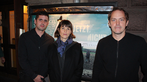 Donnerstag, 9. November: „Jetzt. Nicht.“ heißt das Langfilmdebüt der ehemaligen KHM-Studentin Julia Keller, das diese gemeinsam mit ihrem Kommilitonen Janis Mazuch entwickelt hatte. Am Tag des Bundesstarts ihres Films waren Keller und Mazuch gemeinsam mit ihrem Hauptdarsteller Godehard Giese zu Gast in der Kölner Filmpalette, um im Anschluss an die Projektion die Fragen von Kinoleiter Dirk Steinkühler und der Zuschauer im Saal zu beantworten. Das kleine Kino am Eigelstein platzte dabei aus allen Nähten, dem Andrang konnte man nur mit dem Aufstellen zusätzlicher Klappsitze gerecht werden. Nils Ebert, der Marketingchef des Kölner Filmverleihs Wfilm war am Abend ebenso in der Filmpalette zu Gast wie Bettina Brokemper, die mit der Kölner Filmproduktionsfirma Heimatfilm „Jetzt. Nicht.“ gemeinsam mit dem WDR produziert hatte. Der volle Kinosaal goutierte das Debüt nach der Projektion mit lang anhaltendem Applaus. Julia Keller erläuterte dann, dass Janis Mazuch zuvor bereits einen Film über Unternehmensberater realisiert hatte, und dass die beiden dadurch gemeinsam auf die Idee gekommen wären, sich mit einem Mann zu beschäftigen, der sich allein über seine Arbeit identifizierte und nun als Folge der Wirtschaftskrise gekündigt wird.