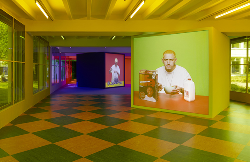 Was macht eigentlich Eminem, wenn er morgens am Frühstückstisch sitzt? Mit ausdrucksloser, starrer Miene löffelt er Cornflakes mit Milch – so jedenfalls stellt sich Alex Da Corte (*1980) die Szene vor. Der US-amerikanische Maler, Bildhauer und Filmemacher beschäftigt sich in seiner Filminstillation „The Superman“ im Kölnischen Kunstverein intensiv mit dem weltbekannten Rapper als Privatperson.