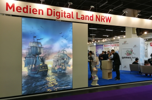 Neben dem Erreichen von potentiellen Käufern wollen auch professionelle Kontakte geknüpft werden. Um gerade kleine Studios dabei zu fördern, präsentierten sich unter dem Zusammenschluss „Medien Digital Land NRW“ mehrere überregionale Unternehmen aus der Region im Business-Bereich der Gamescom. „Wir bieten hier einen zentralen Meeting-Platz für Entwickler aus NRW, die sich vernetzen oder über Fördermöglichkeiten informieren wollen“, erklärte Junior-Netzwerkreferentin Sophia Henning vom Mediennetzwerk.NRW, einem Tochterunternehmen der Film- und Medienstiftung NRW. Der Fokus liegt in einer bereits stark vernetzten Branche jedoch längst nicht mehr nur im Lokalen. „Wir sind auf diversen deutschen Messen unterwegs, aber nehmen auch beispielsweise drei Entwicklerteams mit zur Tokyo Game Show im September, wo sie sich und ihre Spiele präsentieren können“, ergänzte Henning.
