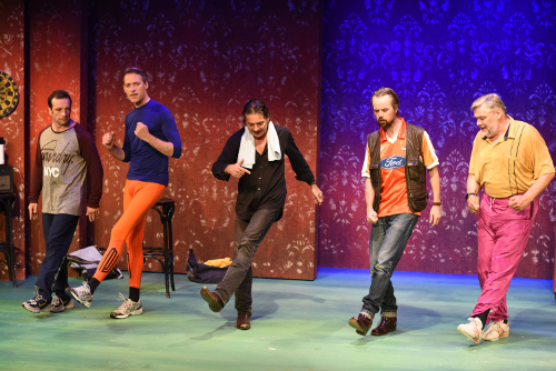 Denn die Herren haben sich viel vorgenommen und suchen vor allem noch zwei Kumpane für ihre Show. Auf Ihre Anzeigen meldeten sich der hochgewachsene Robin (Dominik Meurer), der sich mit einem Zungenkuss beim fünften Mann Wassliy (Eduard Burza) umgehend outet. Der diese Neigung entrüstet von sich weist, gekontert von Robin: „Du hast es nur noch nicht gemerkt.“ Das war aber auch die einzige homoerotische Szene, für Köln eher ungewöhnlich. Denn das Hauptproblem für die Herren in der turbulenten Komödie war nicht der Name ihrer Truppe – passend fand man „Die wilden Stiere“ – sondern die zentrale Frage „Ganz oder gar nicht“?