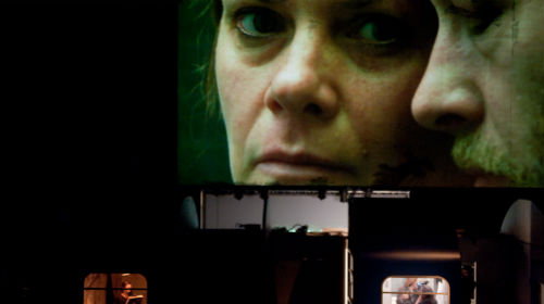 Die englische Regisseurin Katie Mitchell nimmt sich nach Texten von Kroetz, Woolf und Sebald diesmal Friederike Mayröckers 1984 erschienenen Kurzroman „Reise durch die Nacht“ vor. Das 130 Seiten starke Buch ist ein literarischer Bewusstseinsstrom. Ein Text, in dem die Zugfahrt nur den Rahmen bildet für den Aufenthalt der Ich-Erzählerin in der Echokammer der Assoziationen. Harsche Selbstexamination verbindet sich dabei mit Erinnerungen an die Eltern, Verweisen auf die Bildende Kunst oder die Rekapitulation der Beziehung zu Julian – alles aber wird zum Bestandteil der „Schreibarbeit“, der Transformation von Erfahrung in Sprache.