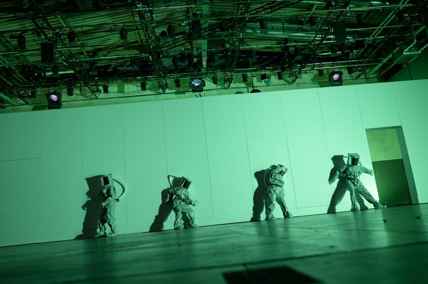 Jonigks Theaterfassung „Gegen den Hass“ nach dem gleichnamigen Buch von Carolin Emcke spielt nicht mit diesen zeitgenössischen Plattitüden zwischen dem vollen europäischen Boot bis zum fast biblischen Hass auf die vermeintlichen Jesusmörder. Die Regie braucht dafür nur eine schlichte weiße Projektionswand mit Türen auf der Bühne, die als Dritte Wand (Lisa Däßler) mal vor- und zurückfährt und die Distanz zwischen Publikum und Protagonisten auch mal extrem verkürzt. „Wir sind das Volk“ grölt es da, gleich nach „Du bist die Ruh“ von Franz Schubert. Bei der Busblockade von Clausnitz besetzten eine Handvoll Dumpfbacken den öffentlichen Raum und verletzten mit dieser Volks-Lüge die Lebensleistung einer ganzen Generation Ostdeutscher Freiheitkämpfer. Ob das wirklich darin kulminiert, dass selbst ein Rassist kein Rassist sein möchte, sei so stehengelassen.