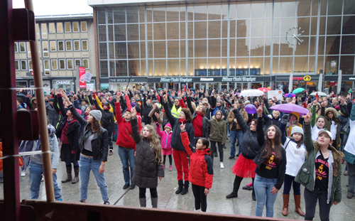 Vergangenes Jahr fand „One Billion Rising“ symbolträchtig auf dem Bahnhofsvorplatz statt, um an die sexuellen Übergriffe in der Silvesternacht zu erinnern. Hat sich die Zahl sexueller Gewalttaten gegen Frauen verändert? Dazu Irmgard Kopetzky, die für den Frauennotruf Köln arbeitet: „Die Zahlen sind gleichbleibend. Sie steigen nur punktuell an, wenn das Thema stärker in der Öffentlichkeit präsent ist. Grundsätzlich ist heute die Bereitschaft der Frauen höher, in die Beratung zu kommen und sexuelle Belästigung im öffentlichen Raum auch anzuzeigen. Auch die Polizei ist seit der Silvesternacht sensibilisierter bei dem Thema. Früher hieß es: ‚Ist eh nix passiert.‘ Heute wird es juristisch ernster genommen.“