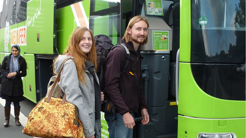 Ist eigentlich auch gut fürs Klima, was den Geldbeutel schont? Das hängt davon ab, wie Mitfahrer-Pkw und Bus ausgelastet sind, oder ob die Bahn mit Ökostrom fährt. „Hinter der Bahn muss sich der Bus jedenfalls nicht verstecken“, meint Rammensee. Eine Studie des Umweltbundesamtes scheint dies zu bestätigen. Danach kommt der Bus bei 60prozentiger Auslastung auf ein Benzin-Äquivalent von 1,3 Litern pro 100 Personenkilometer, der Zug mit 48 Prozent Belegung auf 2,3 Liter. Und die Pünktlichkeit? Soll nach erster Erfahrung „erstaunlich“ sein. Klar: Ein internationaler Bus, der in Ungarn startete, bringt erfahrungsgemäß eher Verspätung mit. Auch die von Katharina und Lukas genutzte Linie kann zwischen Stuttgart und Karlsruhe schon mal in den Stau kommen. „Aber wenn man will“, sagt die Essenerin, „wird man per SMS vorgewarnt.“