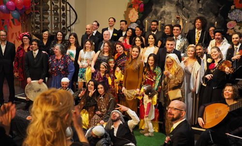 Die für die hervorragende Barockmusik verpflichtete Neue Hofkapelle Graz durfte gelegentlich aus der Rolle fallen und zusammen mit zwei Spielern aus der Region (Oud: Saad Mahmood Jawad, Djose: Bassem Hawar) an den authentischen alten Instrumenten traditionelle arabische und sephardische Musik spielen, zu der nicht nur die Syrer tanzten und sangen, sondern auch immer wieder „Amor“ Maria Jonas in sephardischer Sprache. In weiteren Gesangsrollen gab es Bethany Seymour (Braut), Christos Pelekanos (Pastor), Lothar Blum (Küster), die Brautjungfern Fida Soubaiti-El-Ali und Rita William und in Nebenrollen Festival-Leiter Thomas Höft (Elvis) und (gänzlich stumm) Adrian Schvarzstein als Meßner. Man merkte, dass alle aus dem Tiefsten schöpften für diese einmalige Aufführung, die für alle etwas Besonderes war. Thomas Höft hielt im Foyer noch eine (Dankes-)Rede, in der er von der „friedensstiftenden Macht von Kunst“ sprach, die er sich von den Veranstaltungen erhoffe. Einen besseren Fest-Auftakt hätte man sich schwerlich wünschen können, weil es gelungen war, mit intakter alter Musik und weitgehend im ursprünglichen Geiste eine unmittelbar relevante Veranstaltung herzustellen. Man hätte sicher genauso gern das Original gesehen, aber auch ein Fest für Alte Musik ist keine Zeitreise, sondern existiert in der krisengeschüttelten Gegenwart.